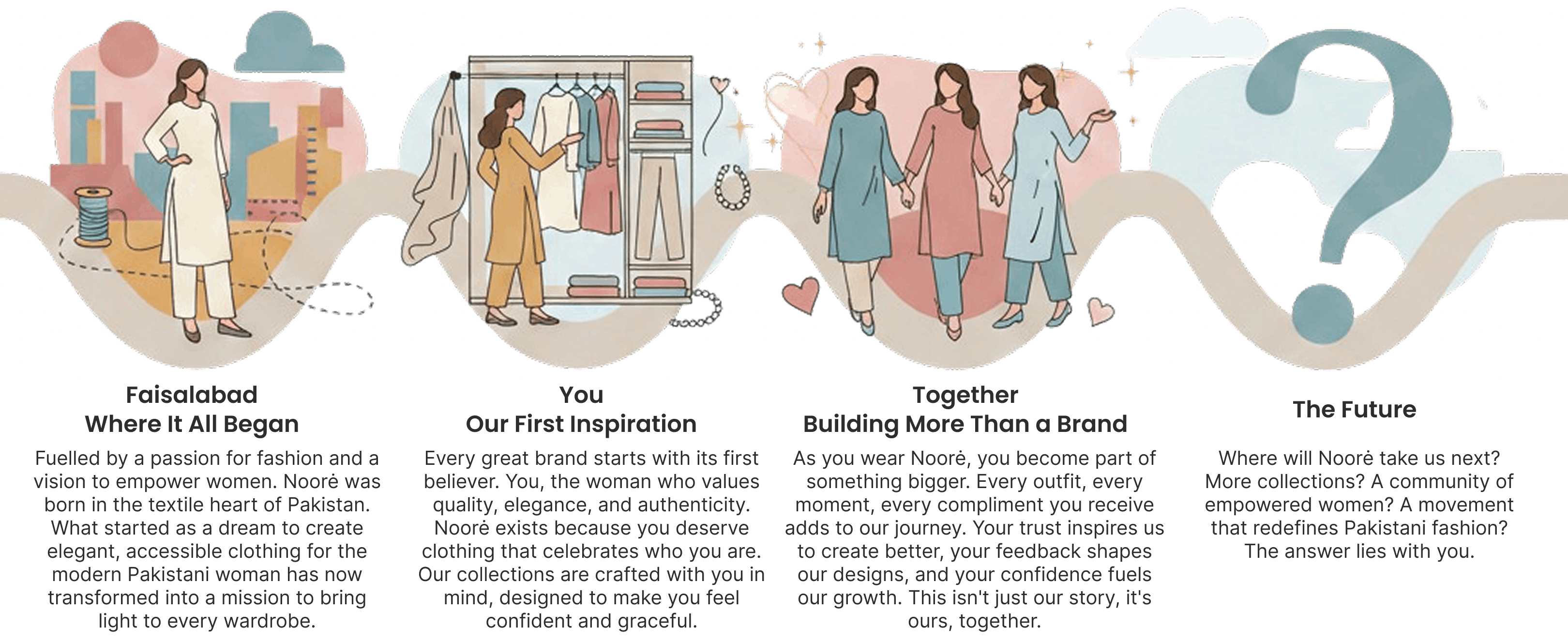 We're just getting started, but we're committed to growing thoughtfully, sustainably, and always with you in mind. Whether it's a casual day out or a special occasion, Noorè is here to bring that light to your wardrobe. Welcome to the Noorè family. Your light starts here.